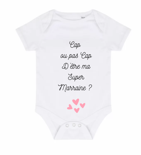 Avec notre collection de Bodies pour bébé, vous pouvez facilement demander à votre entourage d’être une partie importante de la vie de votre bébé, en devenant Parrain ou Marraine.