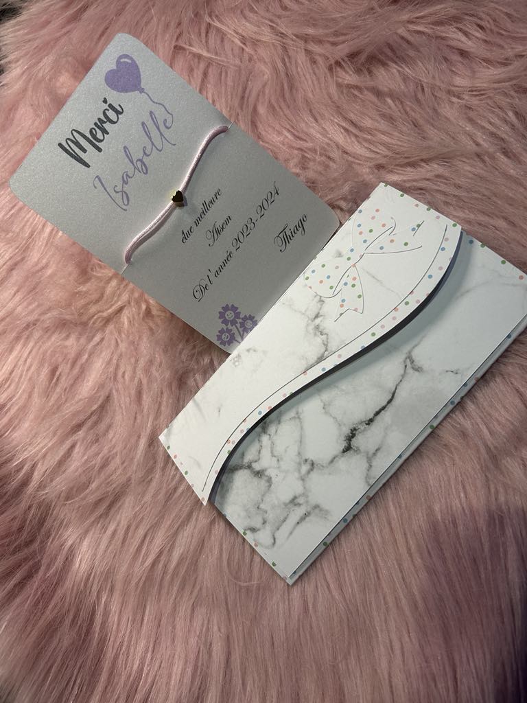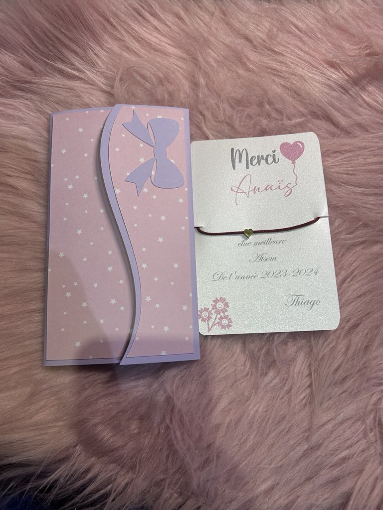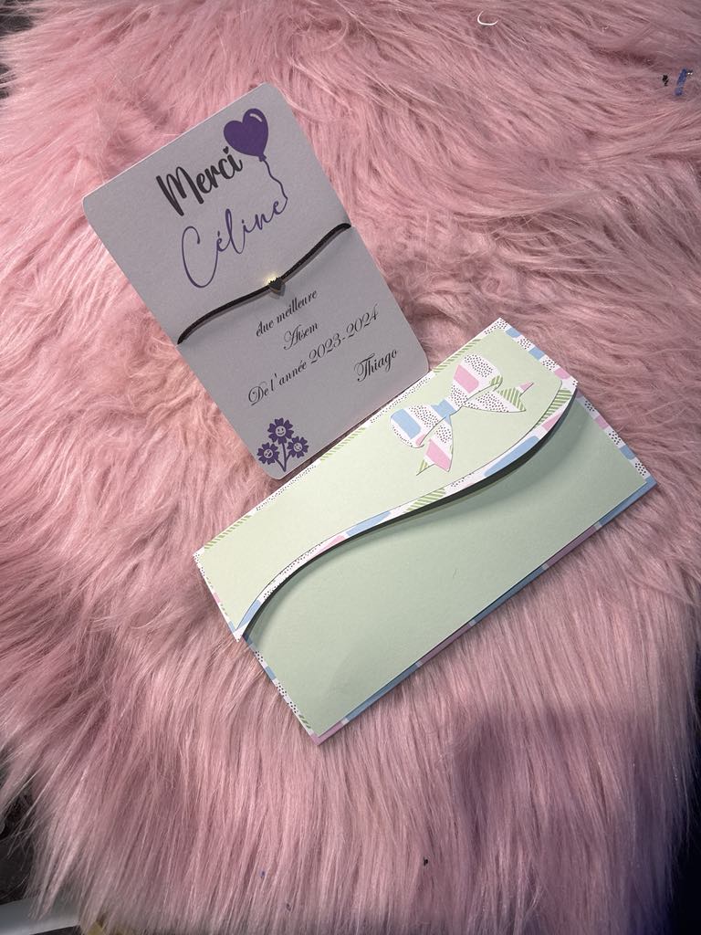 Célébrez votre ATSEM avec le bracelet de l'amitié ! Accompagnée de sa petite carte fabriqué à la main avec un papier irisé de haute qualité, ce bracelet de l'amitié est le cadeau parfait pour finir l'année scolaire en beauté. Son enveloppe faite main avec un fort grammage ajoute une touche spéciale à ce bracelet unique.