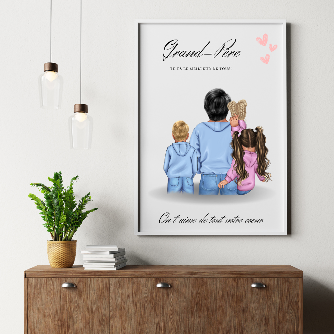 Offrez un cadeau spécial à votre grand-père avec le cadre "Grand-père". Mettez en valeur votre relation avec une représentation touchante de papy et ses petits enfants. Un cadeau unique qui témoigne de l'amour et de la tendresse entre un grand-père et ses petits-enfants.