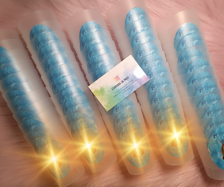 Réduisez votre impact environnemental avec nos gobelets réutilisables et personnalisés. Élégants et pratiques, ils sont parfaits pour tous vos événements. Plus besoin de plastique jetable et vous pouvez y mettre le design de votre choix. Profitez d'un produit durable et unique.