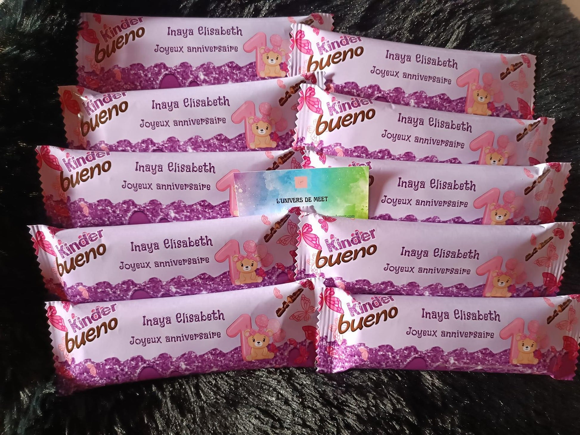 Avec son emballage personnalisé et la possibilité de choisir n'importe quel thème, le Kinder Bueno peut également être un cadeau unique et savoureux pour vos proches.