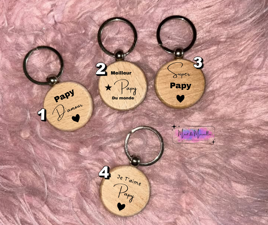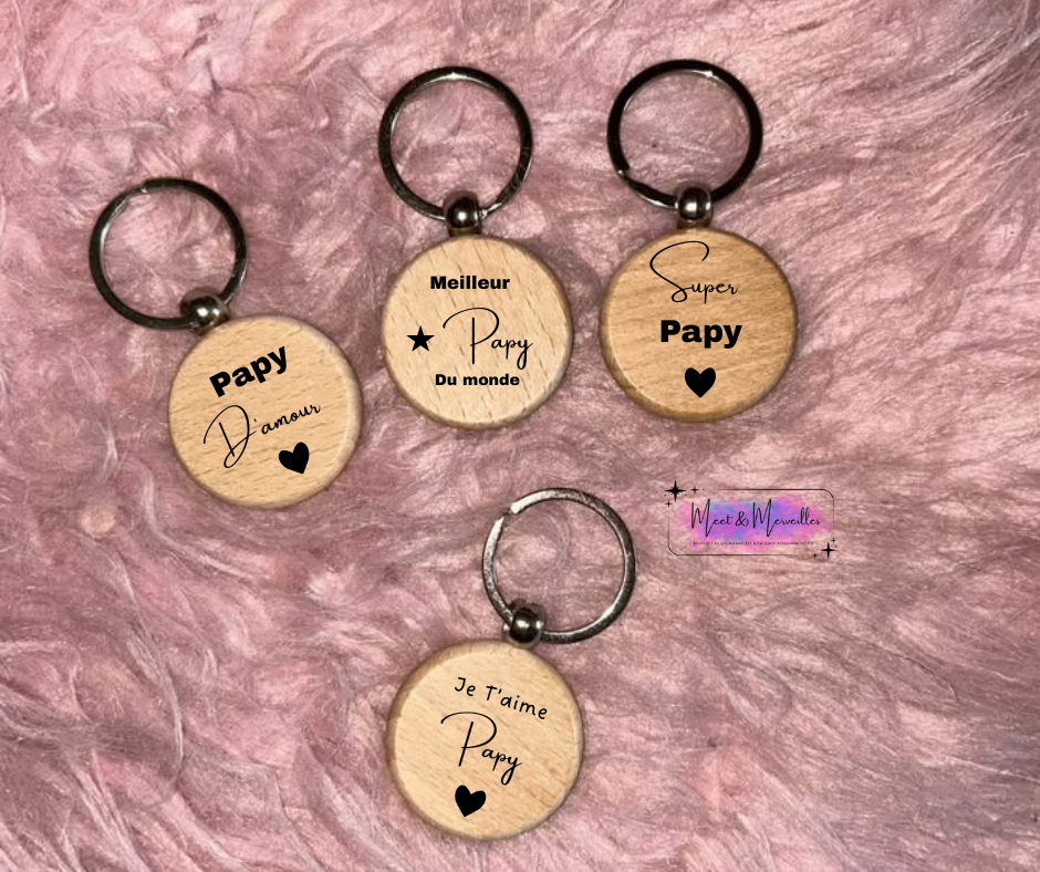 Ces porte-clés ronds en bois naturel sont gravés avec des messages uniques et touchants, parfaits pour rappeler à Papy combien il compte.