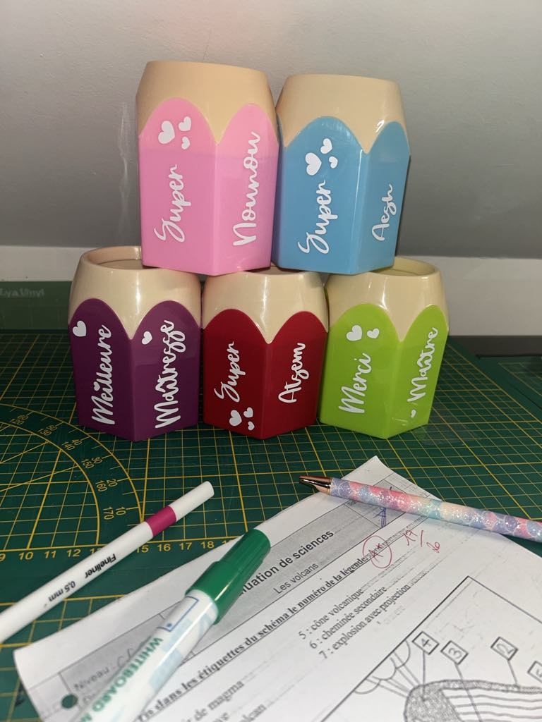 Un adorable pot à crayon personnalisé qui apporte une touche de fantaisie à tout bureau d'écolier ! Parfait comme cadeau de fin d'année scolaire, ce rangement pratique et unique gardera les fournitures organisées tout en rappelant des souvenirs joyeux. Un présent attentionné qui fera sourire petits et grands !